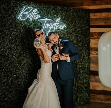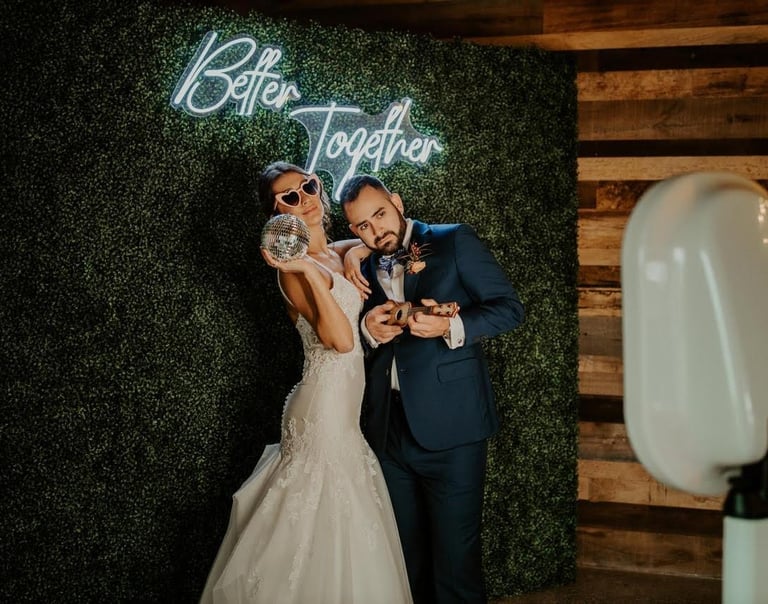 WEDDING PLUS PHOTO BOOTH PACKAGE....UNLIMITED 2X6 PRINTS WITH MEMORY PHOTO GUEST BOOK ,BACKDROP, PROPS,DIGITAL AND VIA TEXT MESSAGE EMAIL SHARING...$650